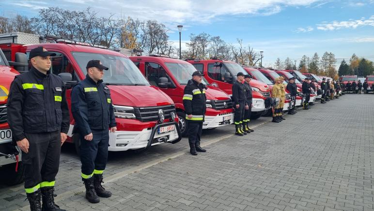 Województwo Opolskie konsekwentnie wzmacnia system ratownictwa i bezpieczeństwa mieszkańców. Podczas uroczystości, która odbyła się dziś w Opolu, przekazano 19 lekkich samochodów ratowniczo-gaśniczych dla jednostek Ochotniczych Straży Pożarnych włączonych do Krajowego Systemu Ratowniczo-Gaśniczego. To połowa sprzętu przewidzianego do dostarczenia w ramach unijnego projektu realizowanego na terenie całego regionu.