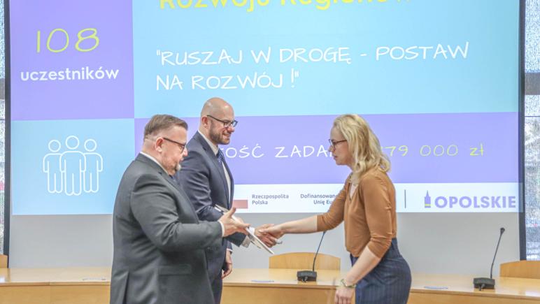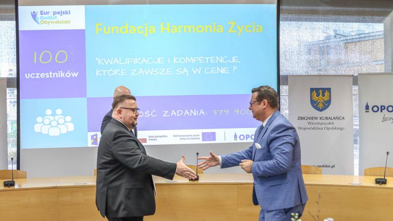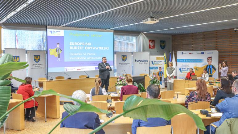 W połowie marca br. Zarząd Województwa Opolskiego rozstrzygnął otwarty konkurs ofert realizowany w ramach Europejskiego Budżetu Obywatelskiego z zakresu kształcenia ustawicznego. Konkurs spotkał się z dużym zainteresowaniem organizacji pozarządowych, które przygotowały szeroką ofertę działań edukacyjnych. Dzisiaj wyłonione podmioty podpisały umowy na realizację 12 zadań, które opiewają na łączną kwotę 4 milionów 645 tysięcy złotych. Projekty obejmują zarówno szkolenia zawodowe, jak i rozwój kompetencji społecznych, edukacyjnych czy cyfrowych.