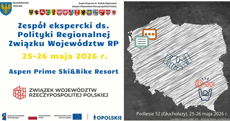 W dniach 25-26 maja 2026 r. w Podlesiu (Głuchołazy) planowane są obrady Zespołu eksperckiego ds. Polityki Regionalnej Związku Województw RP, którym w obecnym okresie przewodniczy województwo opolskie.