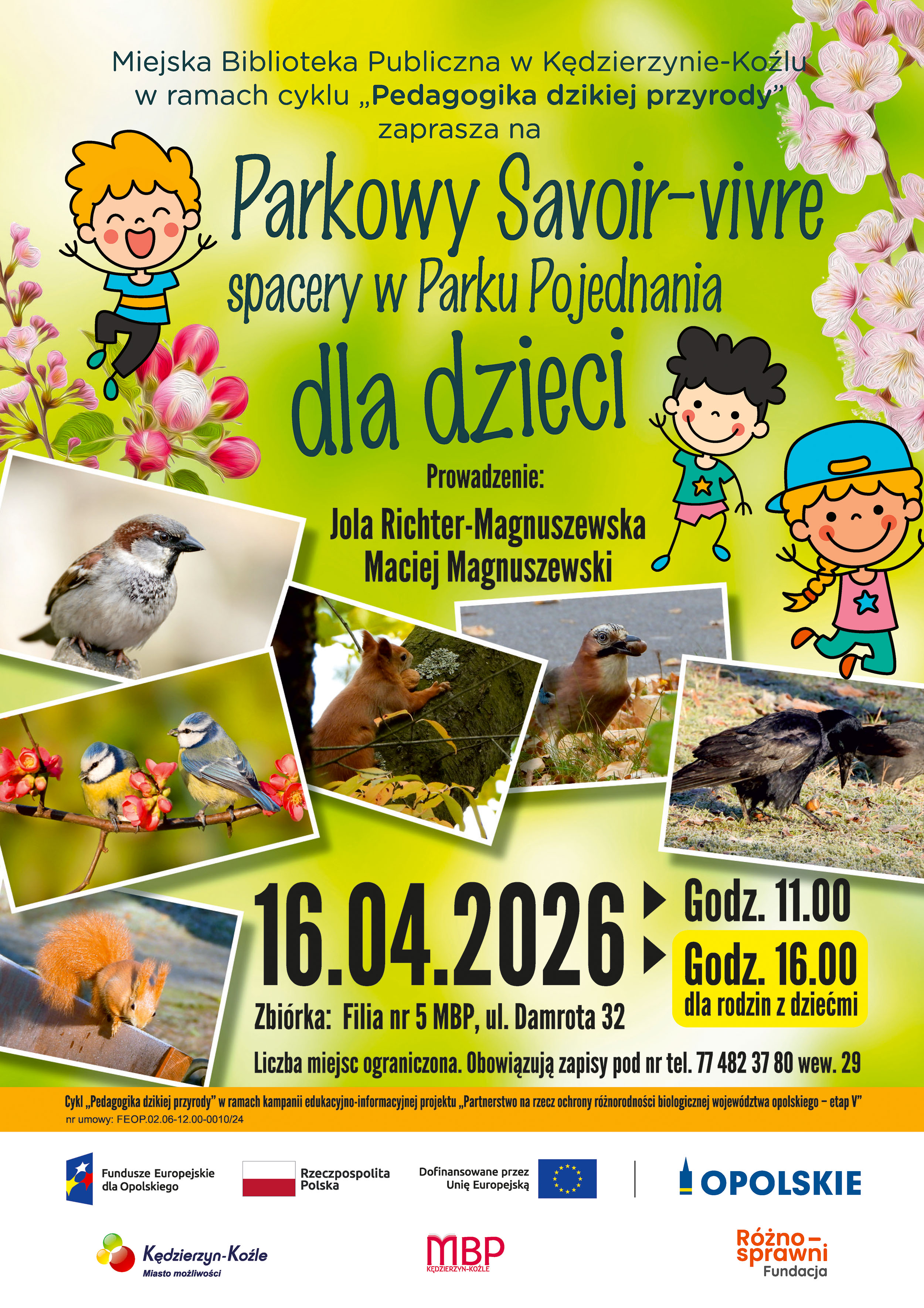 Miejska Biblioteka Publiczna w Kędzierzynie-Koźlu w ramach cyklu „Pedagogika dzikiej przyrody” zaprasza na „Parkowy Savoir-vivre” – spacery w Parku Pojednania dla dzieci.