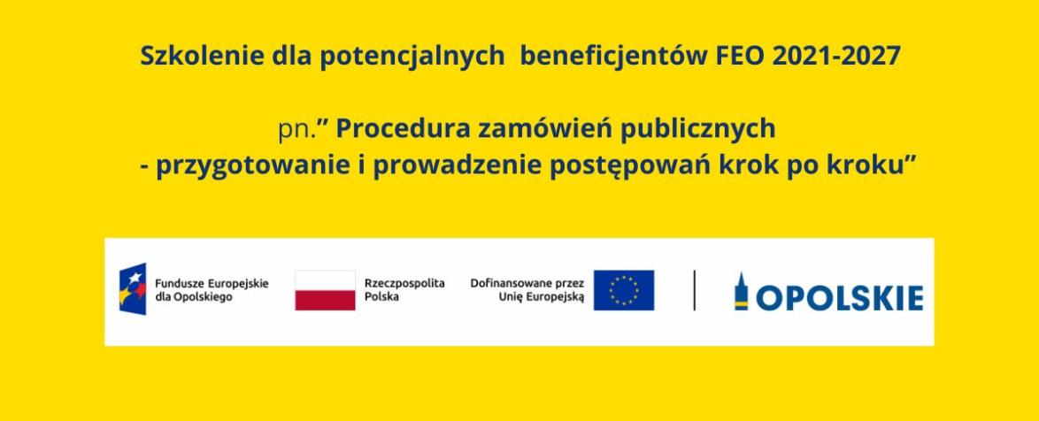 Szkolenie dla potencjalnych beneficjentów programu Fundusze Europejskie dla Opolskiego 2021-2027 pt.” ” Procedura zamówień publicznych - przygotowanie i prowadzenie postępowań krok po kroku”