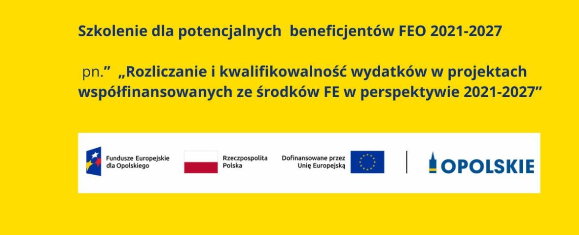Zapraszamy do udziału w bezpłatnym szkoleniu dla potencjalnych beneficjentów programu Fundusze Europejskie dla Opolskiego 2021-2027 pt..: „Rozliczanie i kwalifikowalność wydatków w projektach współfinansowanych ze środków FE w perspektywie 2021-2027”