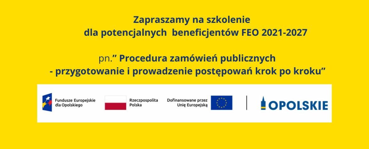 Zapraszamy do udziału w bezpłatnym szkoleniu dla potencjalnych beneficjentów programu Fundusze Europejskie dla Opolskiego 2021-2027 pt. Procedura zamówień publicznych - przygotowanie i prowadzenie postępowań krok po kroku”